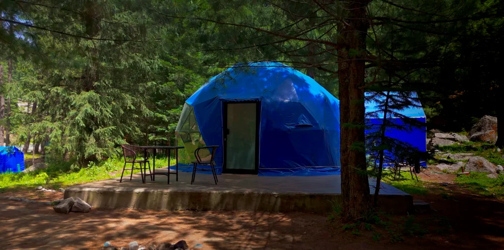 Experience serenity in our Riverview Retreat, nestled amidst the lush jungle with a clear river view from the panoramic windows of your geodesic dome. Riverview Retreat is just behind Riverfront Retreat.